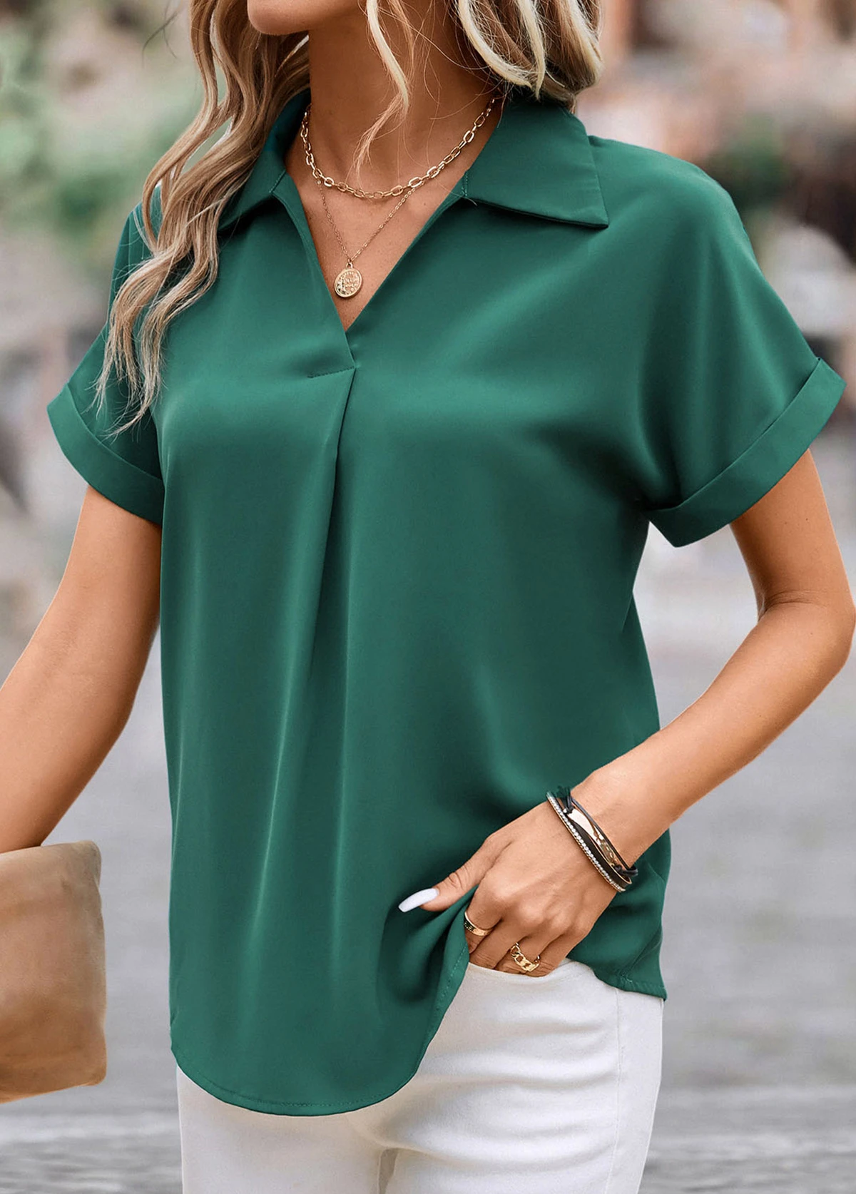 Be the first to review “Short Sleeve Green Shirt Collar Blouse” Cancel reply