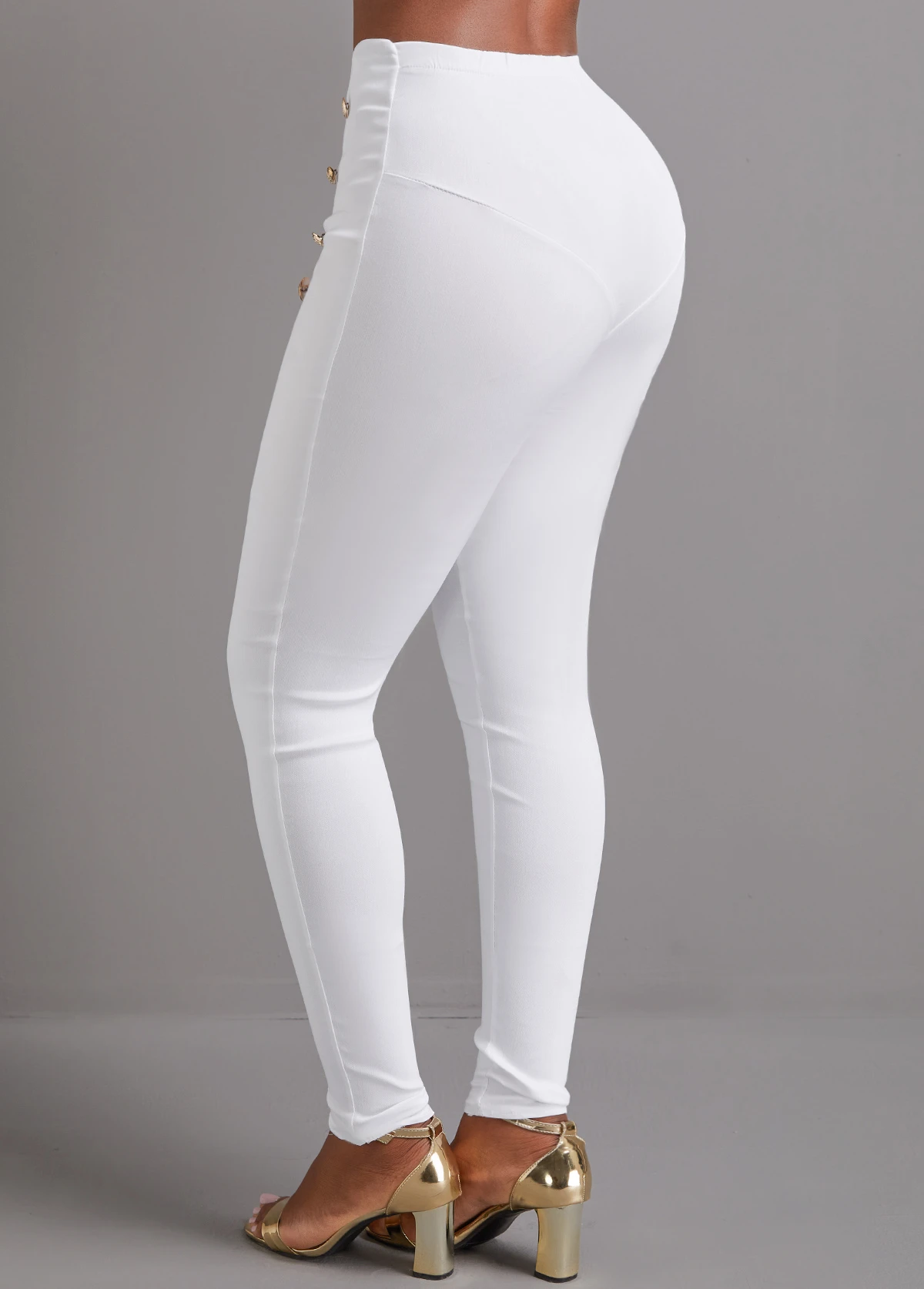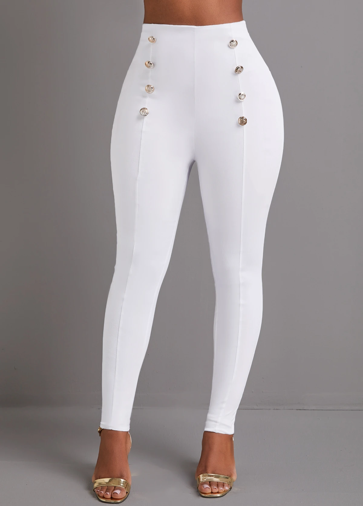Be the first to review “Skinny Button White Elastic Waist High Waisted Pants” Cancel reply