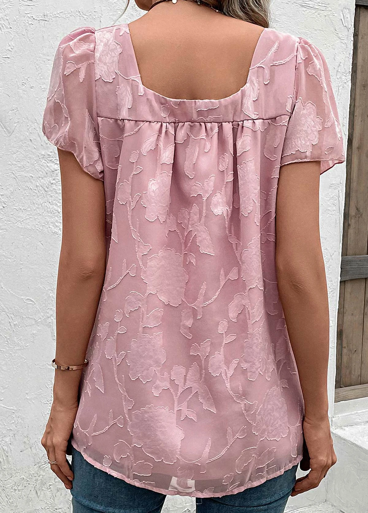 Be the first to review “Square Neck Ruched Pink Short Sleeve Blouse” Cancel reply