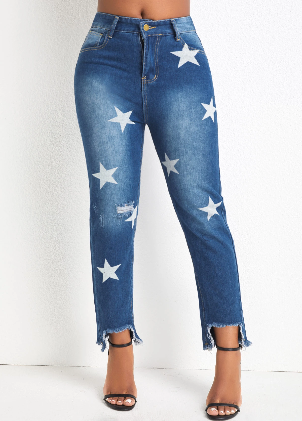 Be the first to review “Star Print Pocket Denim Blue Regular Jeans” Cancel reply