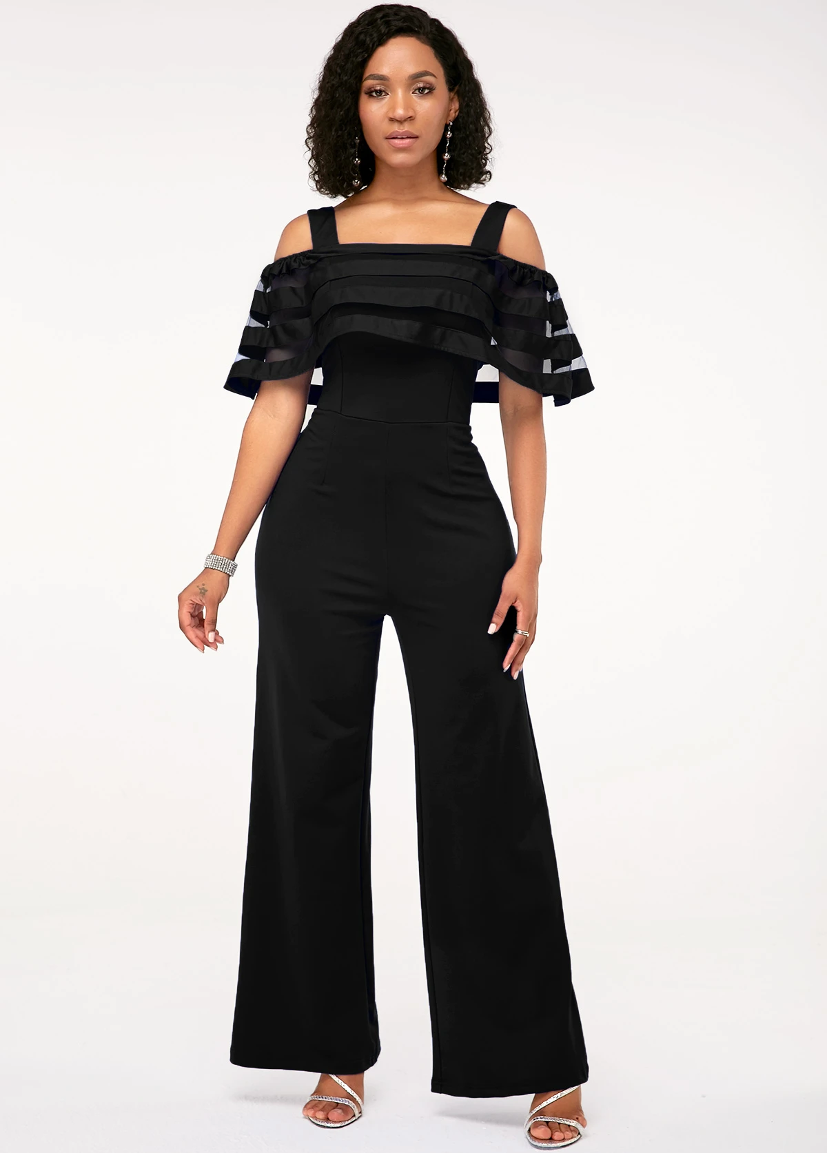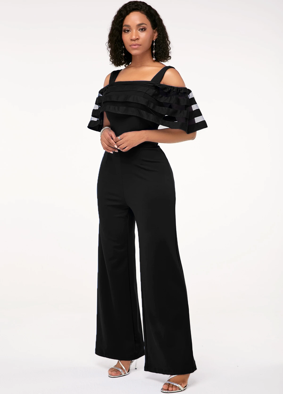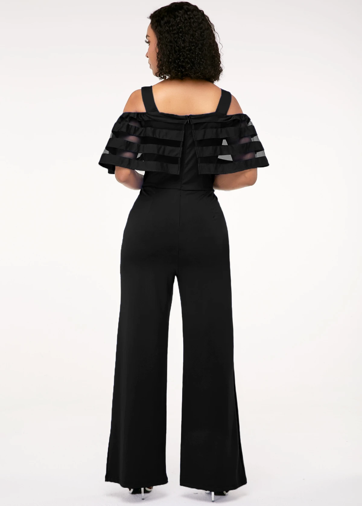 Strappy Cold Shoulder Black Ruffle Overlay Jumpsuit