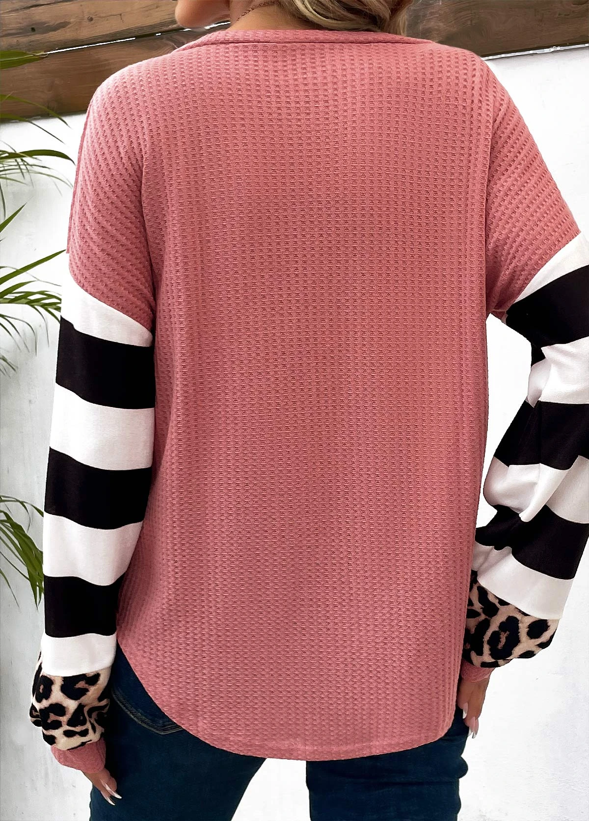 Be the first to review “Striped Patchwork Pink V Neck T Shirt” Cancel reply
