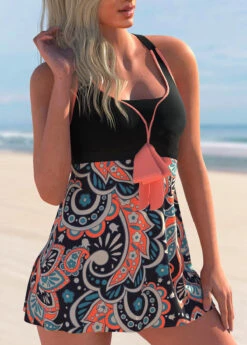 Bowknot Paisley Print Coral Orange Swimdress Top-No Bottom