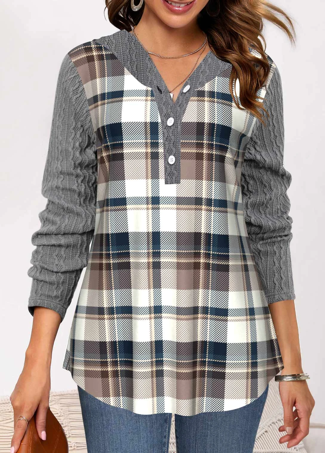 Tartan Print Twisted Grey Regular Sleeve Hoodie