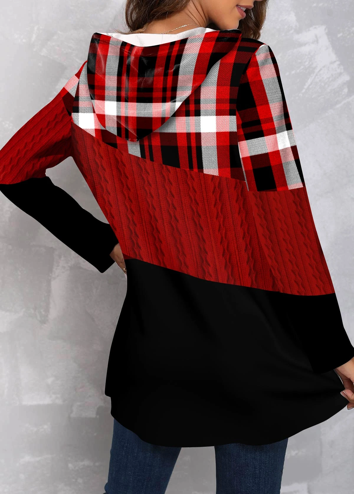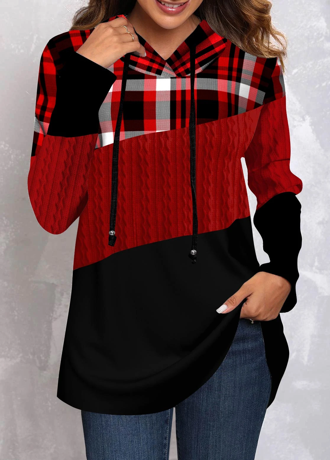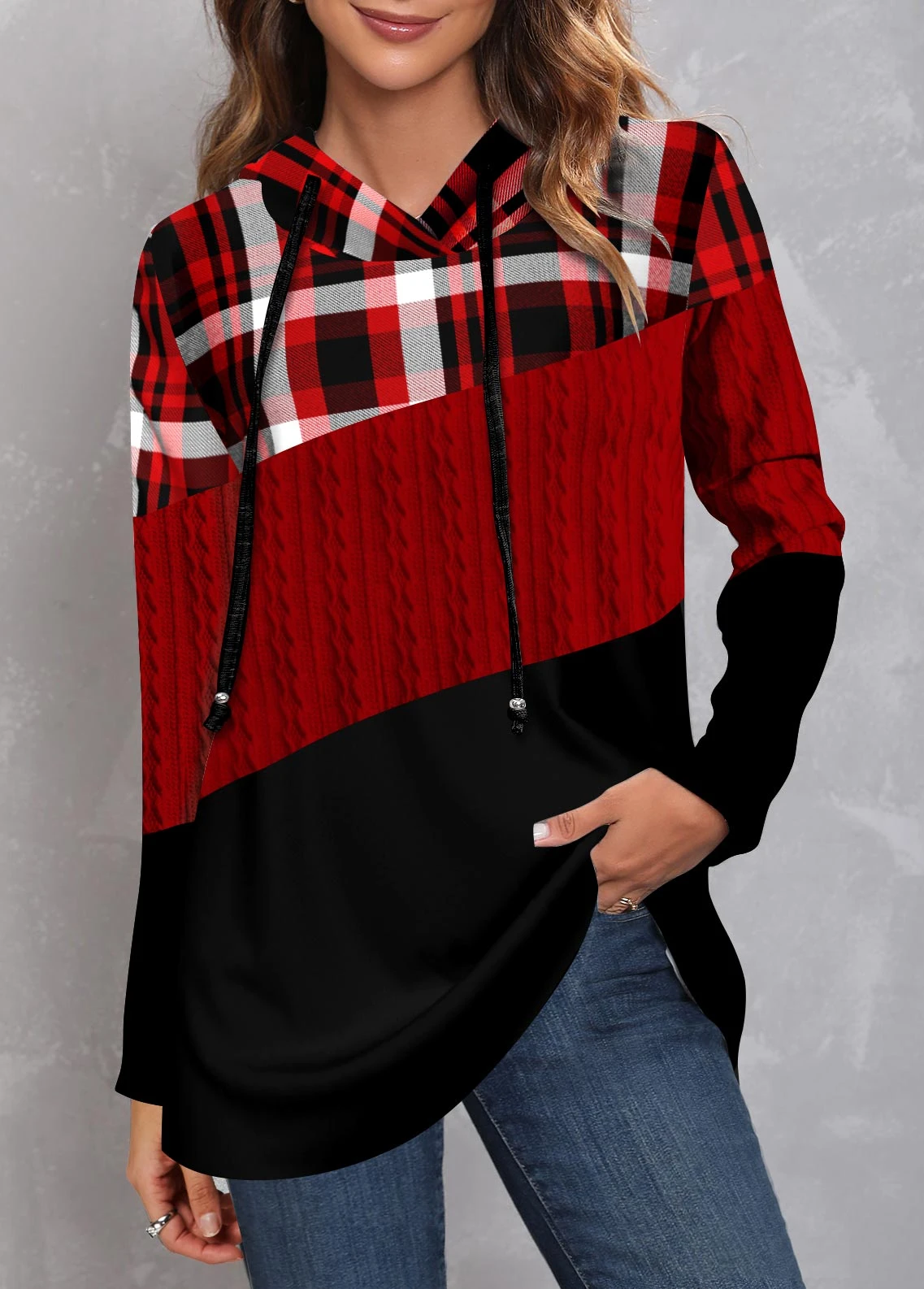 Tartan Print Twisted Red Regular Sleeve Hoodie