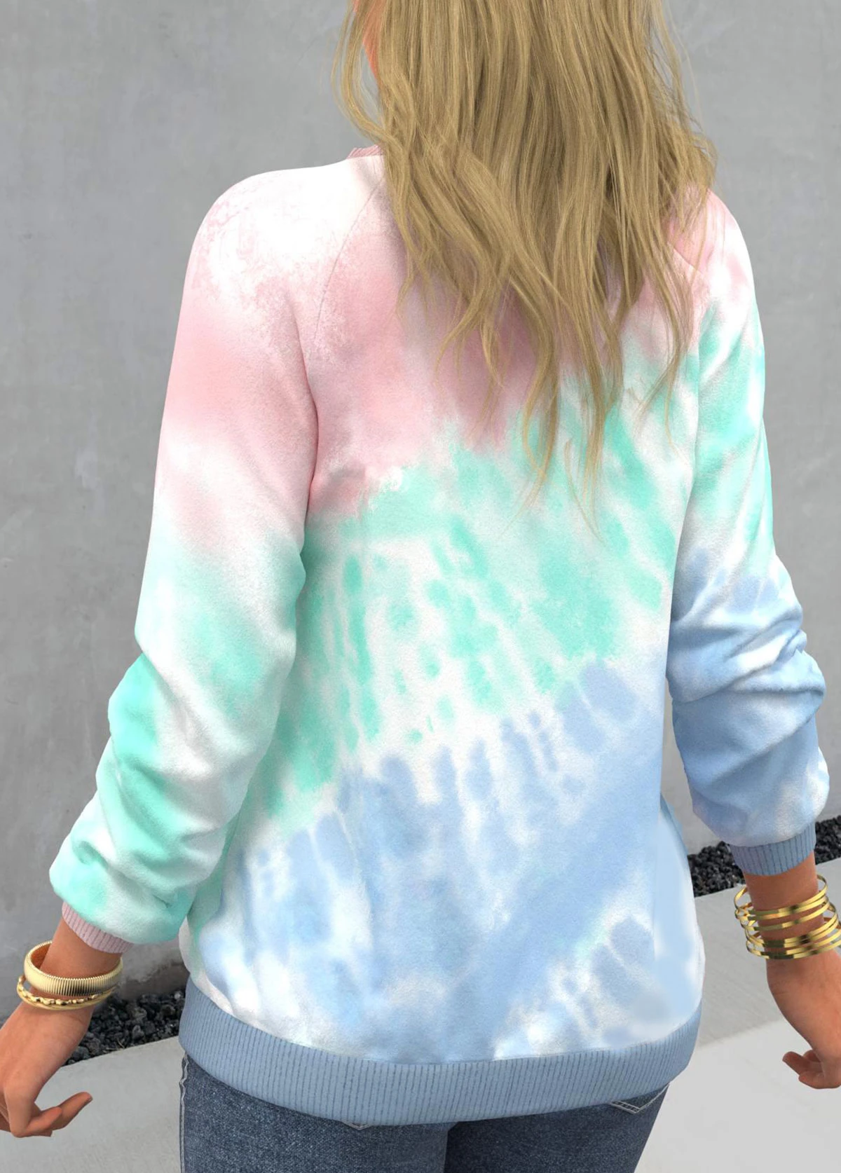 Tie Dye Print Ombre Long Sleeve Pink Sweatshirt