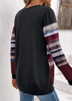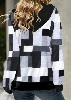 Geometric Print Patchwork Peacock Blue Scoop Neck Sweatshirt