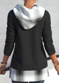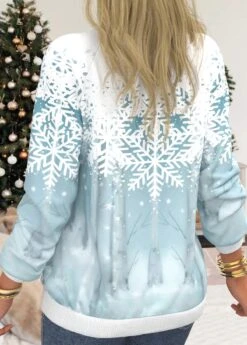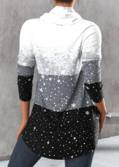 Snowman Print Christmas Patchwork Black Round Neck Sweatshirt