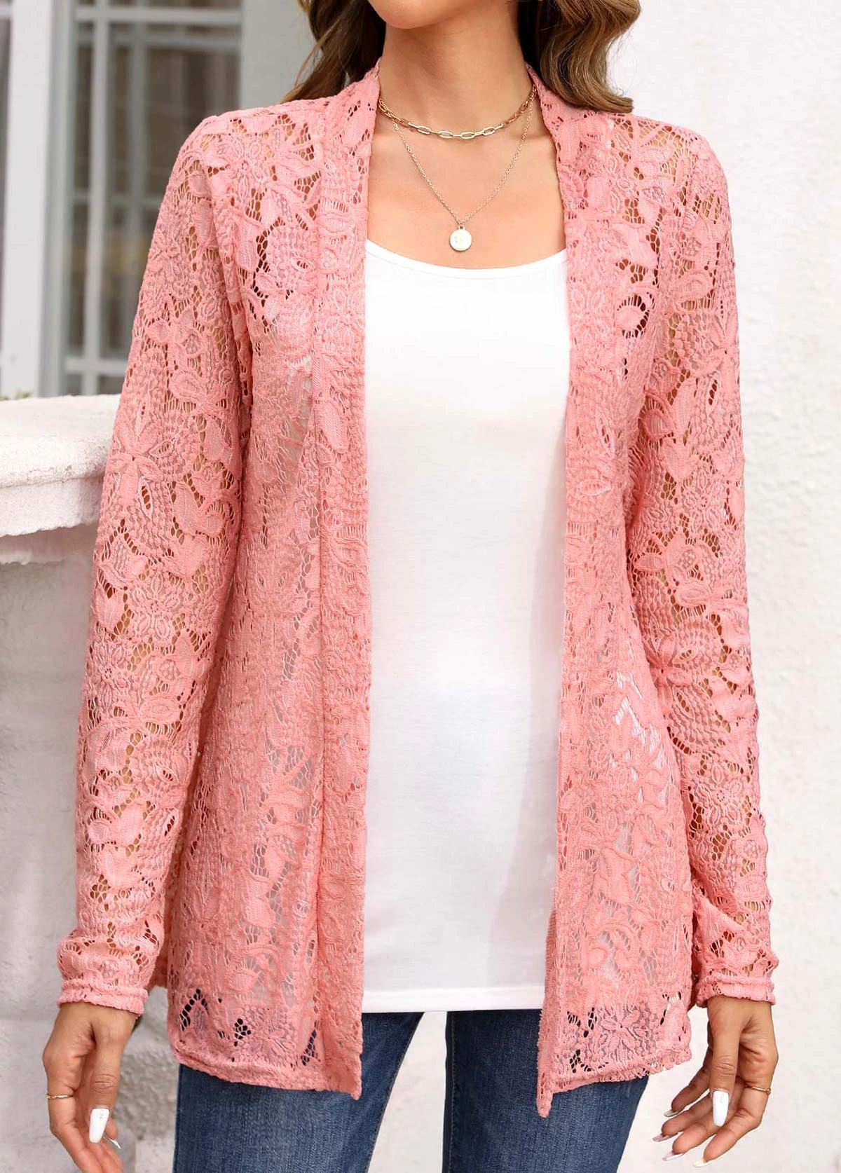 Two Piece Pink Long Sleeve Blouse And Camisole