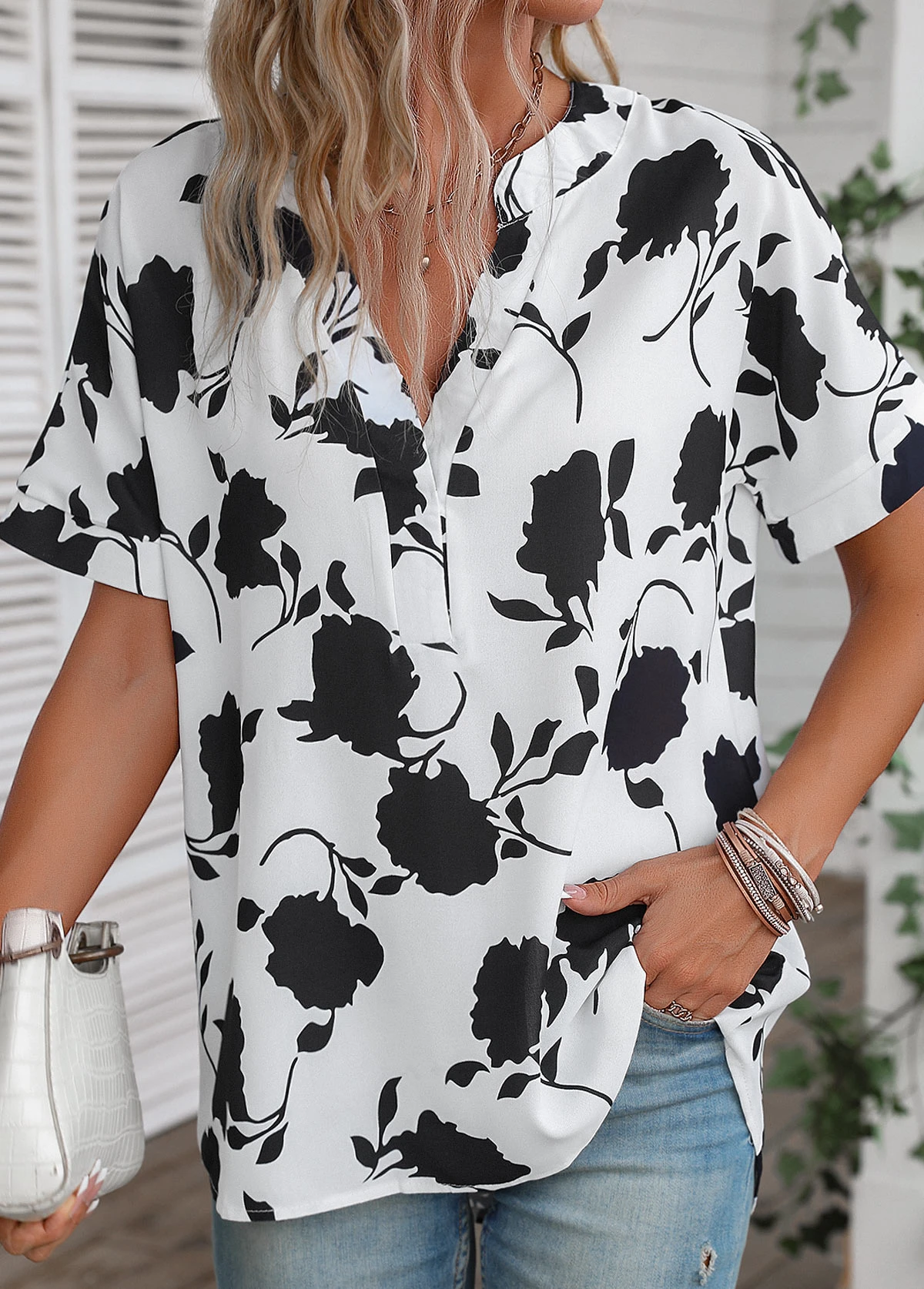 Be the first to review “V Neck Floral Print White Short Sleeve Blouse” Cancel reply