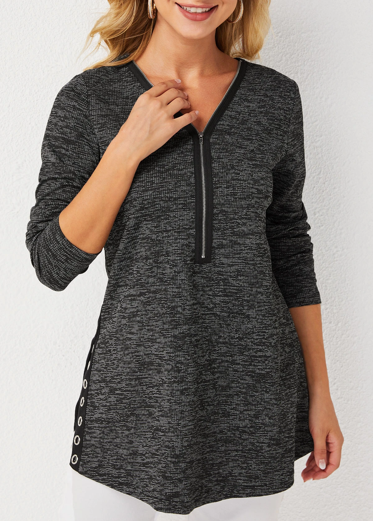 V Neck Quarter Zip Long Sleeve Eyelet Sweatshirt