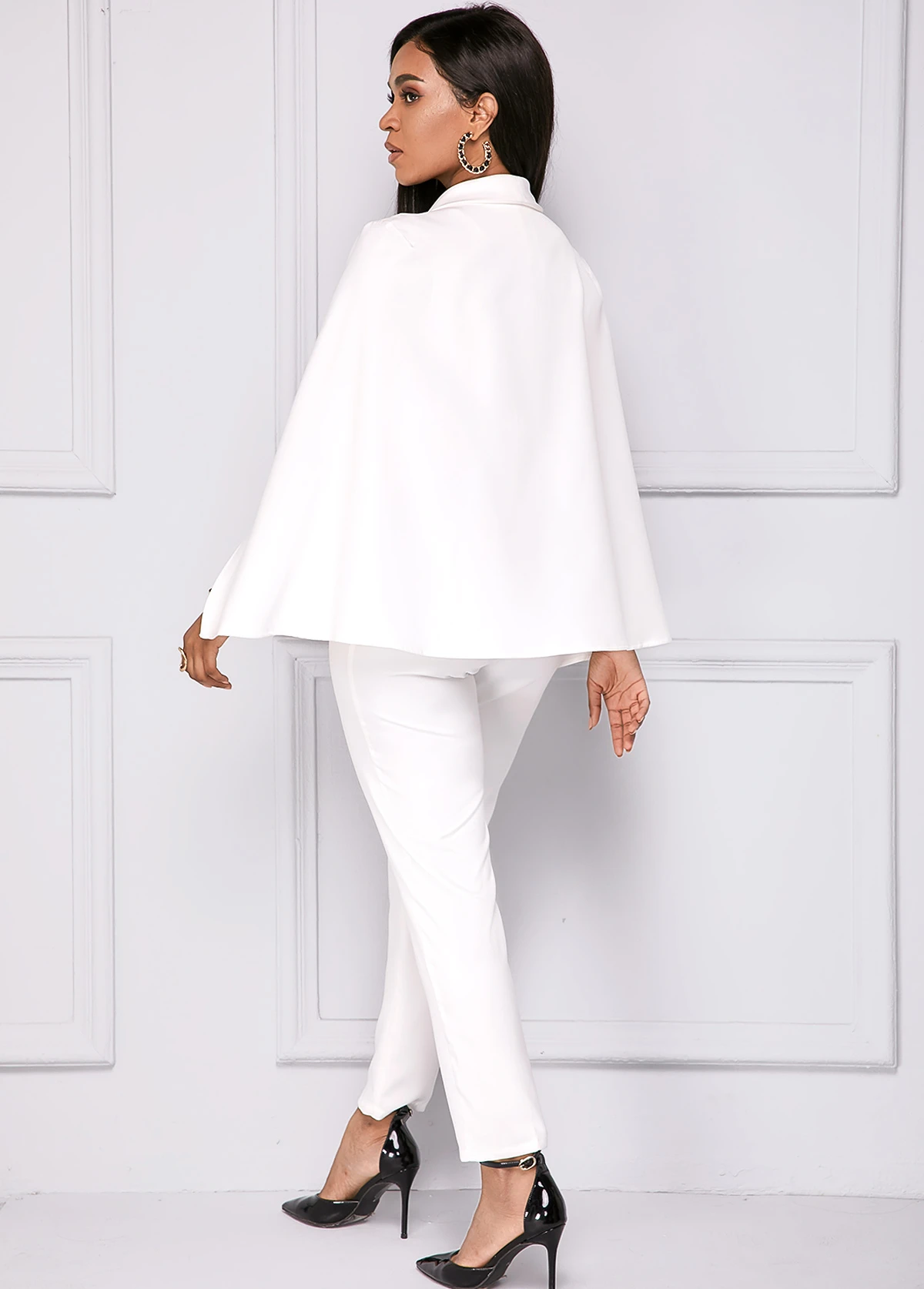White Cape Sleeve V Neck Jumpsuit